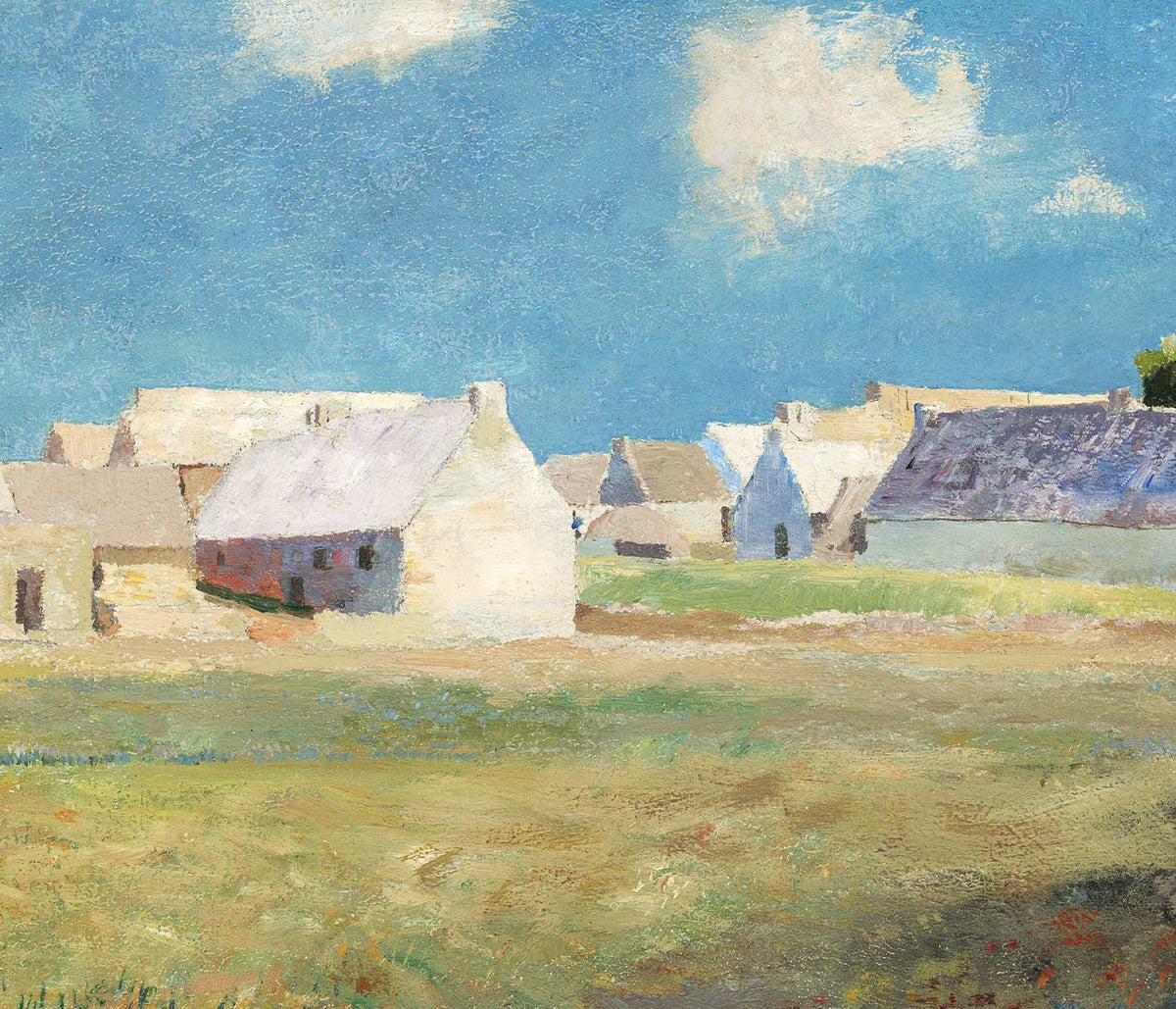 Charles Hamilton Smith · 1835 · Peaceful pastoral art print with sunlit fields, farmhouse silhouettes, and open blue sky
