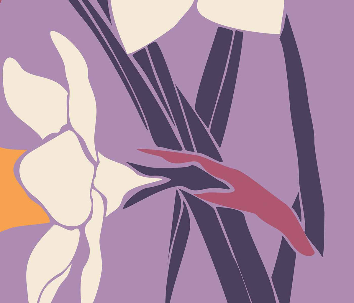 MORYARTY · 2010 · Graphic daffodils poster set against deep purple for a bright seasonal statement