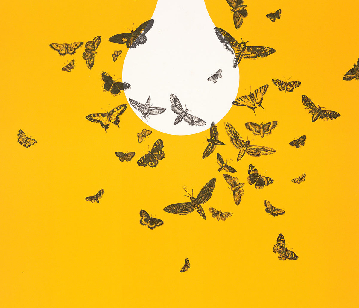 George Braque · 1957 · Abstract bird poster drifting through a cloud with crisp black lines on warm yellow